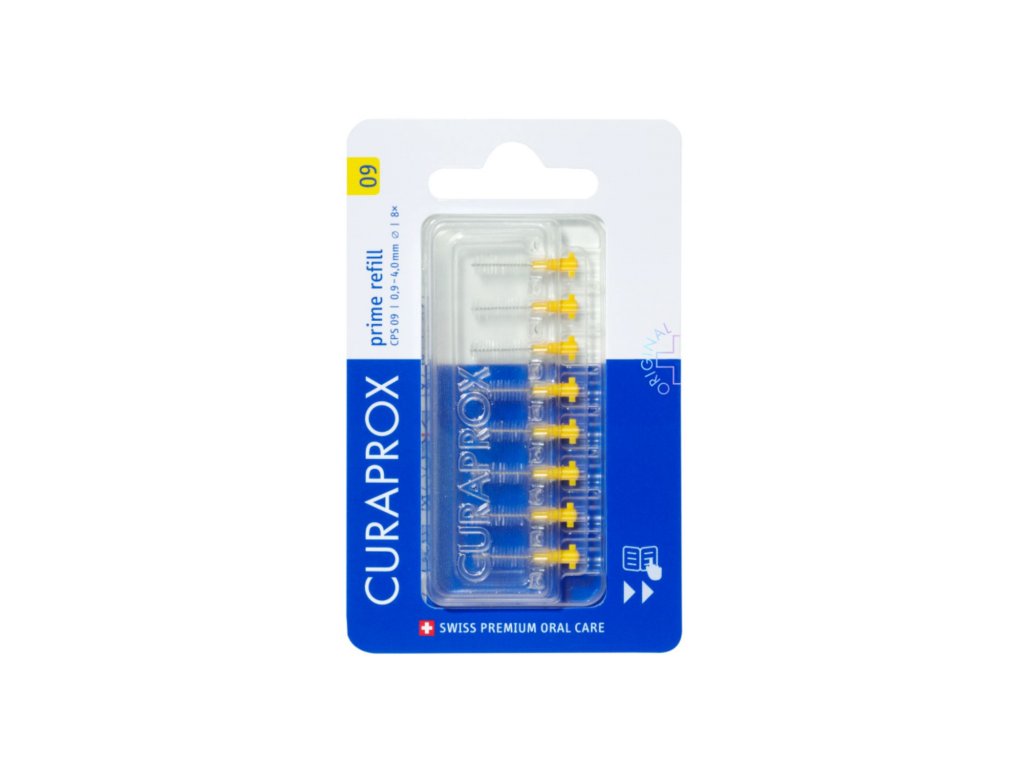8ks náhradních kartáčků CPS 09. Velikost štětin 0,9 - 4mm. Kompatibilní se všemi držáky Curaprox Prime.