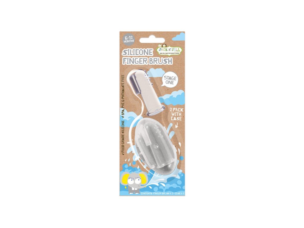 Silikonový kartáček na prst pro čištění prvních zoubků miminka. Použití od 6-12 měsíců. Bez BPA, jemné na dětské dásně a zuby. Balení obsahuje 2ks kartáčku a 1 pouzdro.